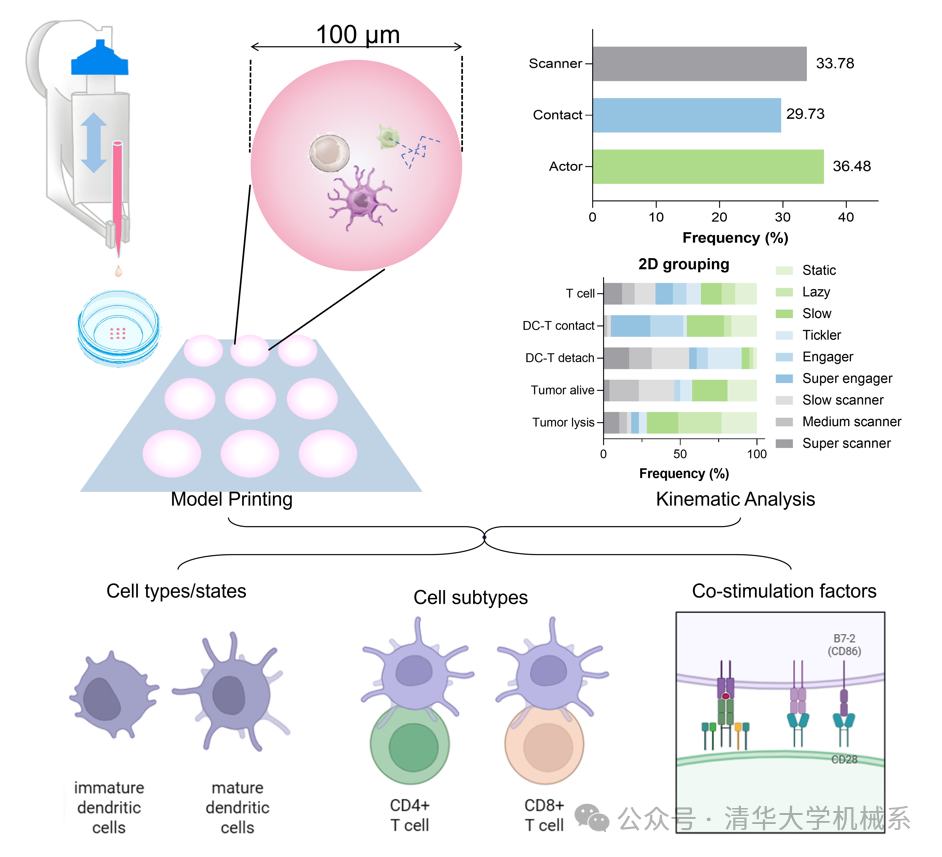 肿瘤适应性免疫过程具有显著的细胞异质性、动态性和空间复杂性,这为体外肿瘤-免疫细胞共培养研究带来了长期挑战。传统多细胞模型通常基于时间节点和群体平均效应进行分析,容易掩盖肿瘤细胞与免疫细胞之间的个体差异,限制了对免疫治疗作用机制、稀有细胞亚型以及关键受体信号的深入解析。单细胞尺度的相互作用模型有望揭示特定细胞亚型之间的动态行为及其功能结局。近日,清华大学机械系孙伟、庞媛课题组联合中国医学科学院肿...