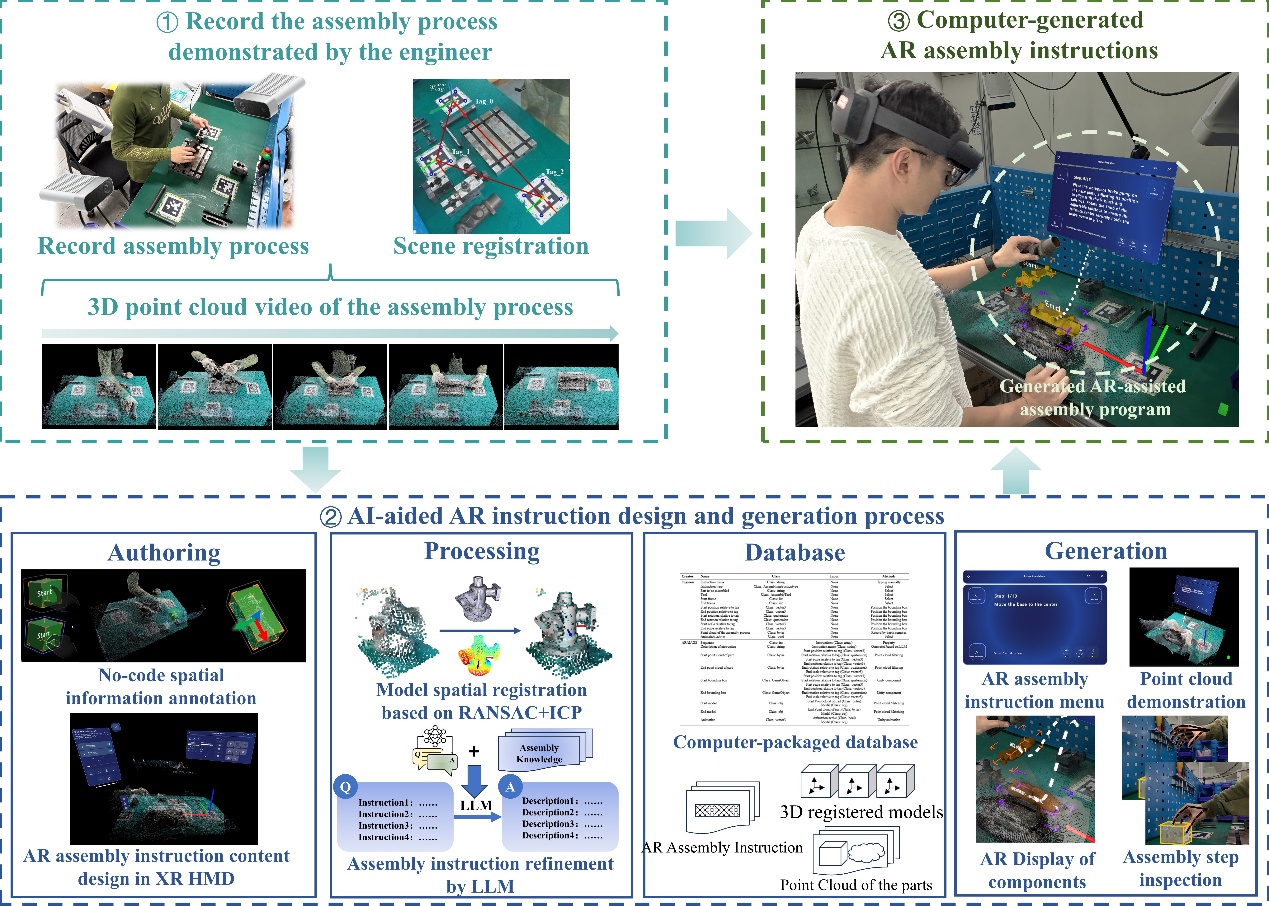 相关研究成果以"AI辅助的自动化增强现实装配指令创作与生成方法”(AI-aided Automated AR-Assisted Assembly Instruction Authoring and Generation method)为题,于9月29日在线发表于《制造系统杂志》(Journal of Manufacturing Systems)。
