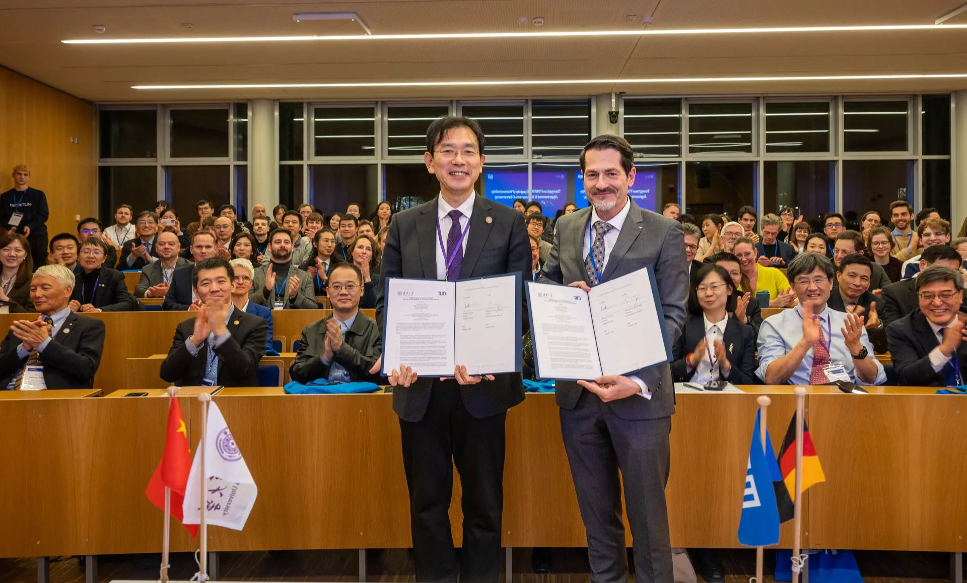 21日上午,代表团走访了位于慕尼黑近郊吉尔兴市的深圳市创鑫激光公司欧洲总部,双方就深化中德激光产业技术合作展开研讨。当日下午,代表团出席了在慕尼黑工大举办的“清华大学日”活动,并见证了清华大学校长李路明与慕尼黑工大校长Thomas F. Hofmann共同续签两校旗舰合作伙伴关系协议。双方将进一步拓展在科研、教育及创新领域的长期战略协作,筑牢合作根基。签约仪式后,代表团还参加了“变革世界中的中德合作-创新与可持续发展之路”专题研讨会等活动。