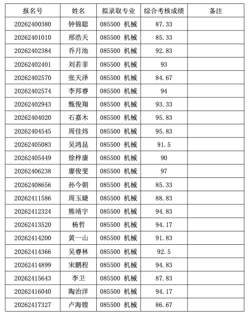 清华大学2026年机械工程系接收推荐免试直硕生拟录取名单公示