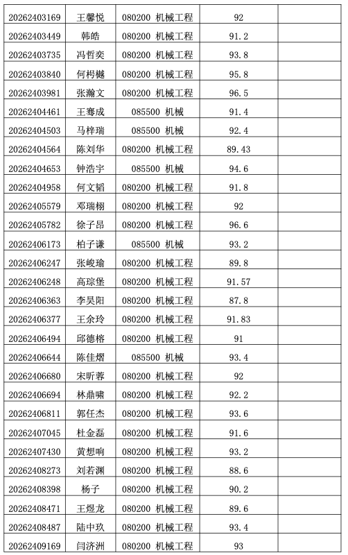 清华大学2026年机械工程系接收推荐免试直博生拟录取名单公示