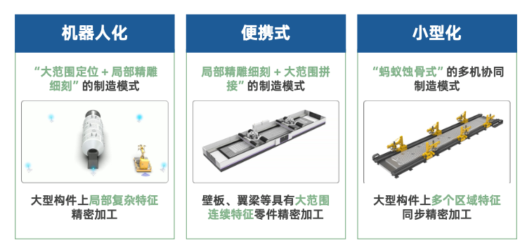 实验室重点研究变革性高端制造装备与技术,针对多样化加工需求,提出和着重推广机器人化、便携式和小型化的三种变革性制造模式,研制高效高精五轴并联加工功能部件,攻克装备数字化设计、精度自检与自修复、跨尺度测量与定位、柔性工艺与控制等关键技术,构建系列化变革性加工装备,提升其可靠性、智能化和精度保持性,在航空、航天等领域开展整机中试与推广应用,实现高端制造技术自主可控。