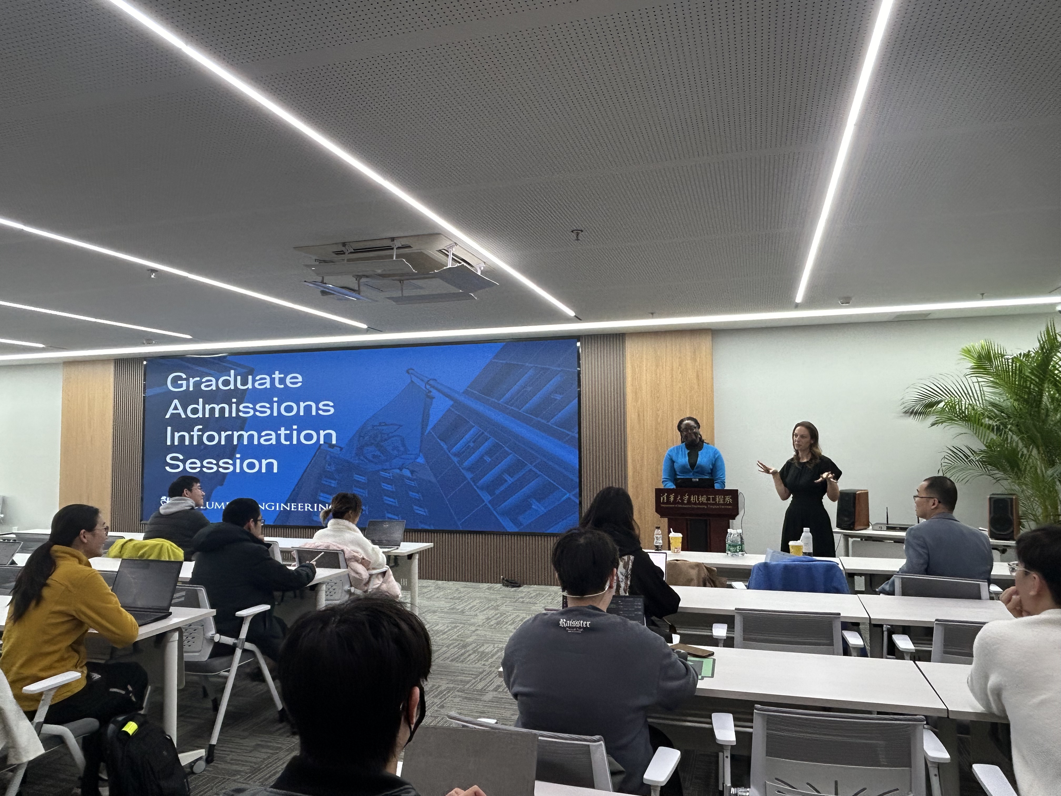 The Columbia team included Ms. Gabrielle Gannon, Associate Dean of Graduate Admissions, Ms. Natasha Stanislas, Graduate Admissions Officer, and Mr. Jason Li, Columbia alumnus, China Trip Coordinator. Wen Peng, Vice Dean of Mechanical Engineering Department and Dr. Lin Zhirong, Deputy Director of the Teaching Office attended the session.