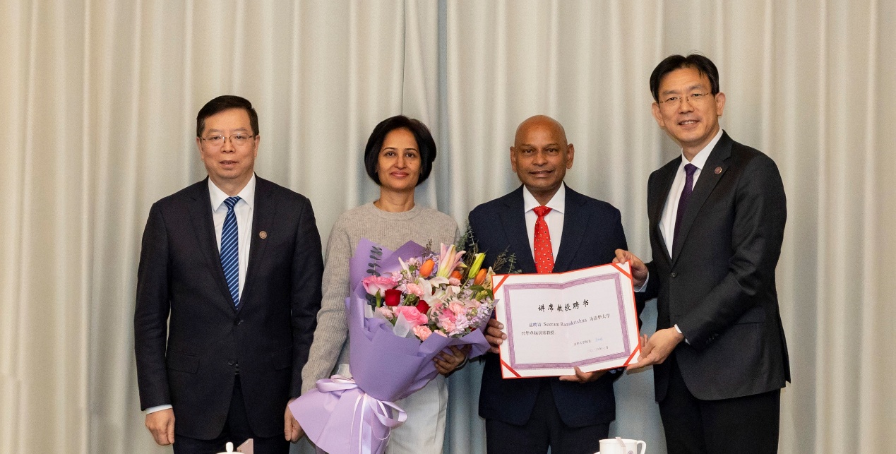 3月23日,清华大学在丙所会议室举行拉马克瑞斯纳·西拉姆(Seeram Ramakrishna)教授聘任仪式,国际著名材料学家西拉姆教授全职加盟清华。校党委书记邱勇、校长李路明出席聘任仪式。副校长王宏伟主持仪式。邱勇(左一)、李路明(右一)与西拉姆夫妇合影李路明为西拉姆颁发聘书 李路明向西拉姆教授全职加盟清华表示欢迎。他说,西拉姆教授是纳米科学与技术领域的全球顶尖科学家,与中国、与清华都有着深厚渊源。期待西拉...