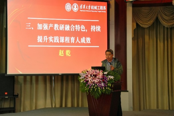 副系主任温鹏对机械系2023-2024学年度本科生和研究生教学工作进行了总结,介绍了机械系在全面深化教育改革方面采取的主要举措和取得的初步成效,并对下一阶段的教学重点工作进行了部署。系教学委员会副主任、实践课程类负责人赵乾就“加强产教研融合特色,持续提升实践课程育人成效”作主题发言,重点介绍了“智能制造与机器人”、“微纳制造与IC装备”、“生物制造与医疗装备”方向探索课的建设方案。