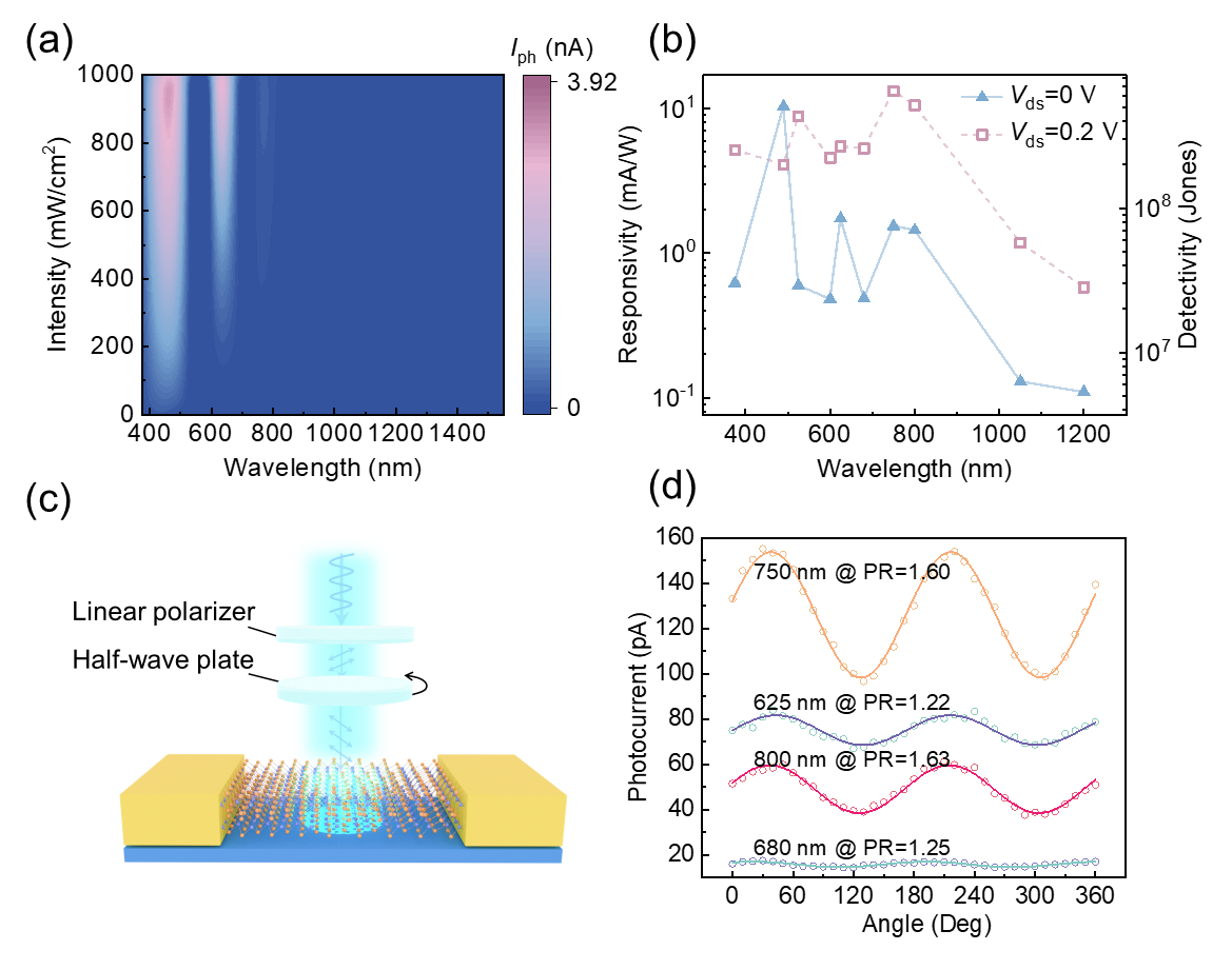 图2. 自驱动光响应谱和偏振敏感探测能力